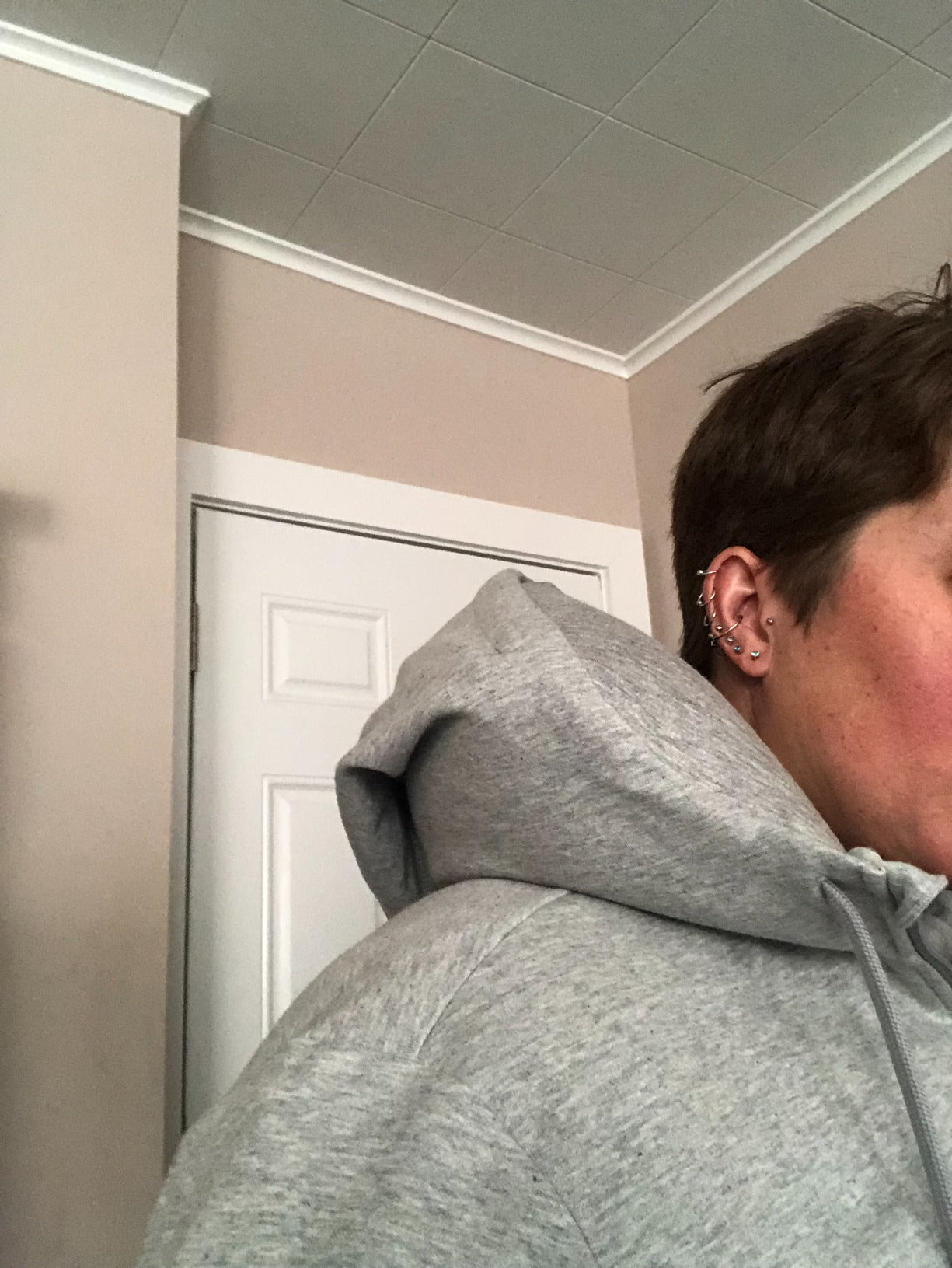 No. The inflation tube sits inside a hidden interior sleeve, so nothing is visible from the outside. It looks like a normal premium hoodie.